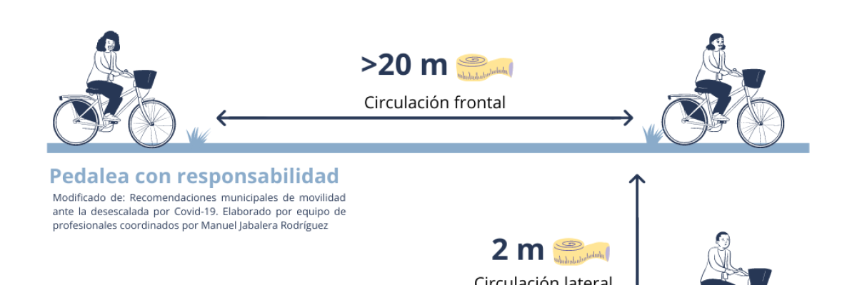 El estudio desarrollado por la Universidad de KU Leuven (Bélgica) y la Universidad de Tecnología de Eindhoven (Holanda) concluye que una persona en movimiento (corriedo, en bicicleta, etc.) debe de ampliar la distancia social debido al flujo que emite al respirar. En base a esta investigación y otros documentos, expertos de la Universidad de Granada han elaborado el manual “Recomendaciones municipales de movilidad ante la desescalada por Covid-19”.En este informe se establecen recomendaciones tanto para los usuarios como para el desplazamiento por municipios, que implican cambios en la organización de las vías urbanas.